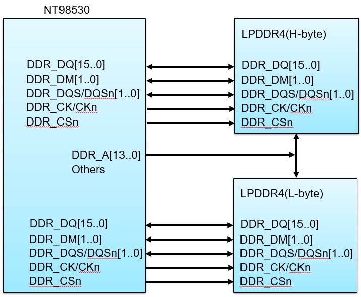 NT98530整合了四颗ARM Cortex A53核心, 可以撷取8Mp60的影像, 拥有先进的AI能力, 运算模型为HW-CNN 2.5, 运算力为2T, 可分析人脸辨识. 影像有多种输入界面, 包含MIPI/LVDS/BT656/BT1120…等, 输出界面有YUV/RGB/BT656/LCD Parallel/MIPI-DSI/HDMI/USB及Ethernet. 另外还有Video codec and Audio codec.